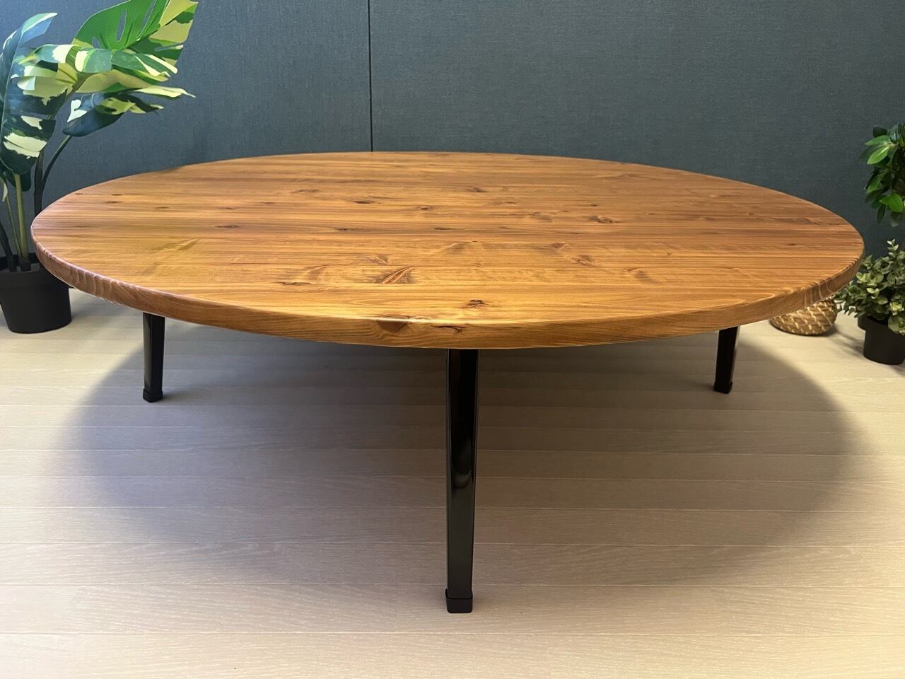 ◎上品な木目が特徴の、パイン材を天板に使用した丸型ローテーブルです。(真円では御座いません!)