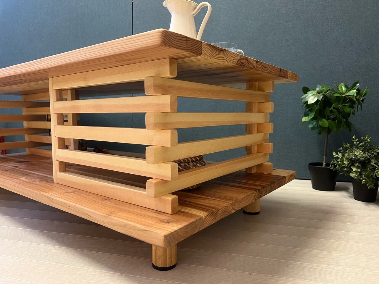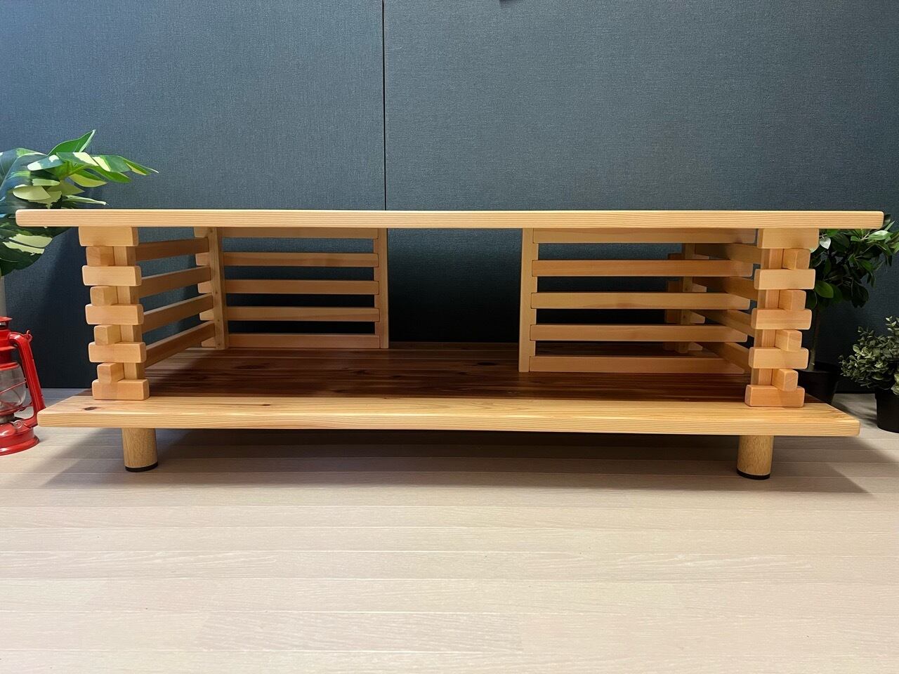【送料無料】 ローテーブル 和風 木組格子形 120cm 60cm 杉 ナチュラル