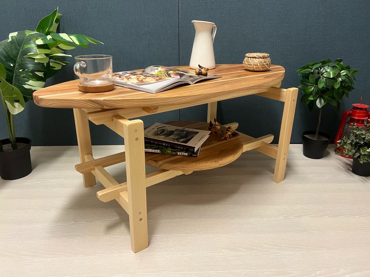 【送料無料】 ローテーブル サマーテーブル 丸 90cm 45cm 杉 ナチュラル 棚付き