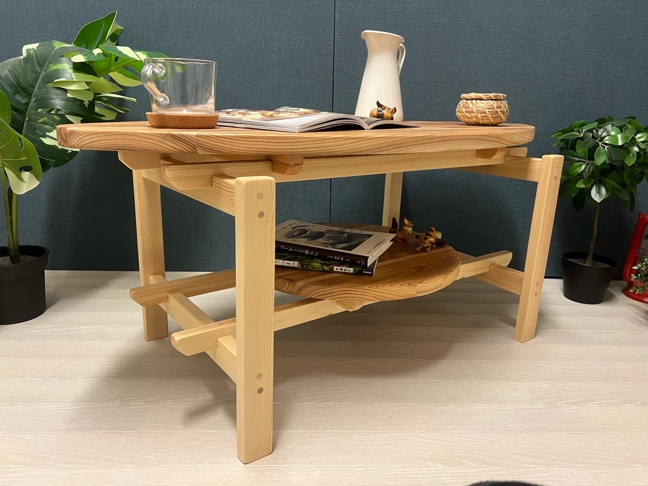 ◎荒々しい木目が美しい、杉材を天板に使用したローテーブルです。