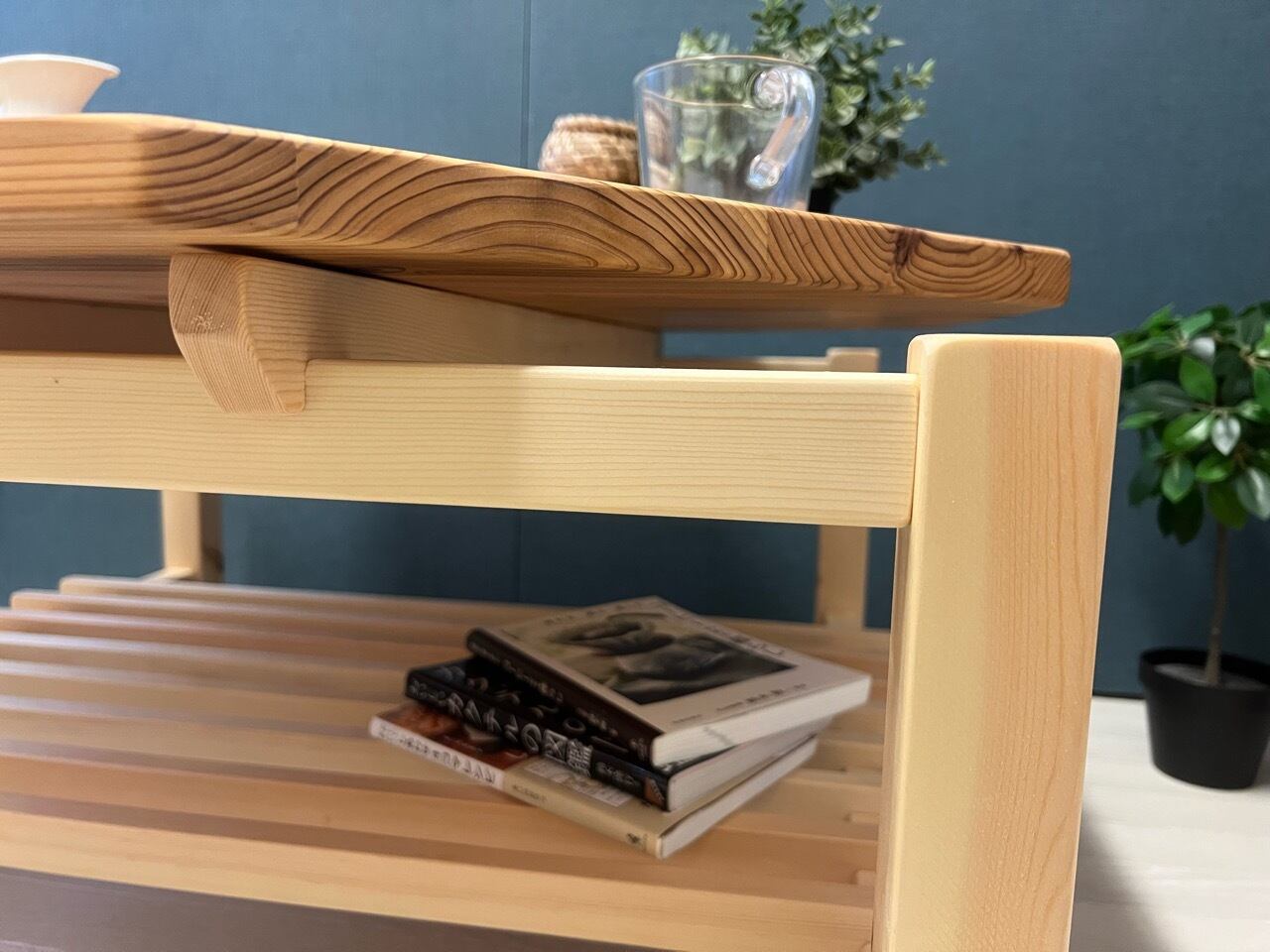 ◎荒々しい木目が美しい、杉材を天板に使用したローテーブルです。