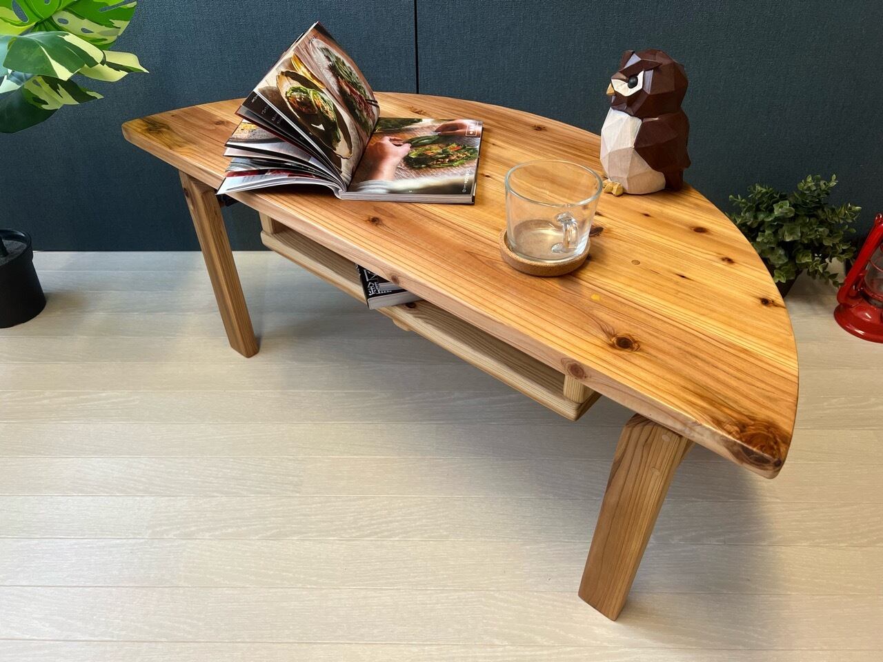 ◎荒々しい木目が特徴の、杉材を天板に使用したローテーブルです。