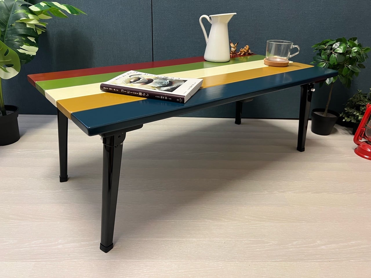 【送料無料】 ローテーブル 長方形 90cm 45cm SPF カラフル ストレート 折りたたみ脚