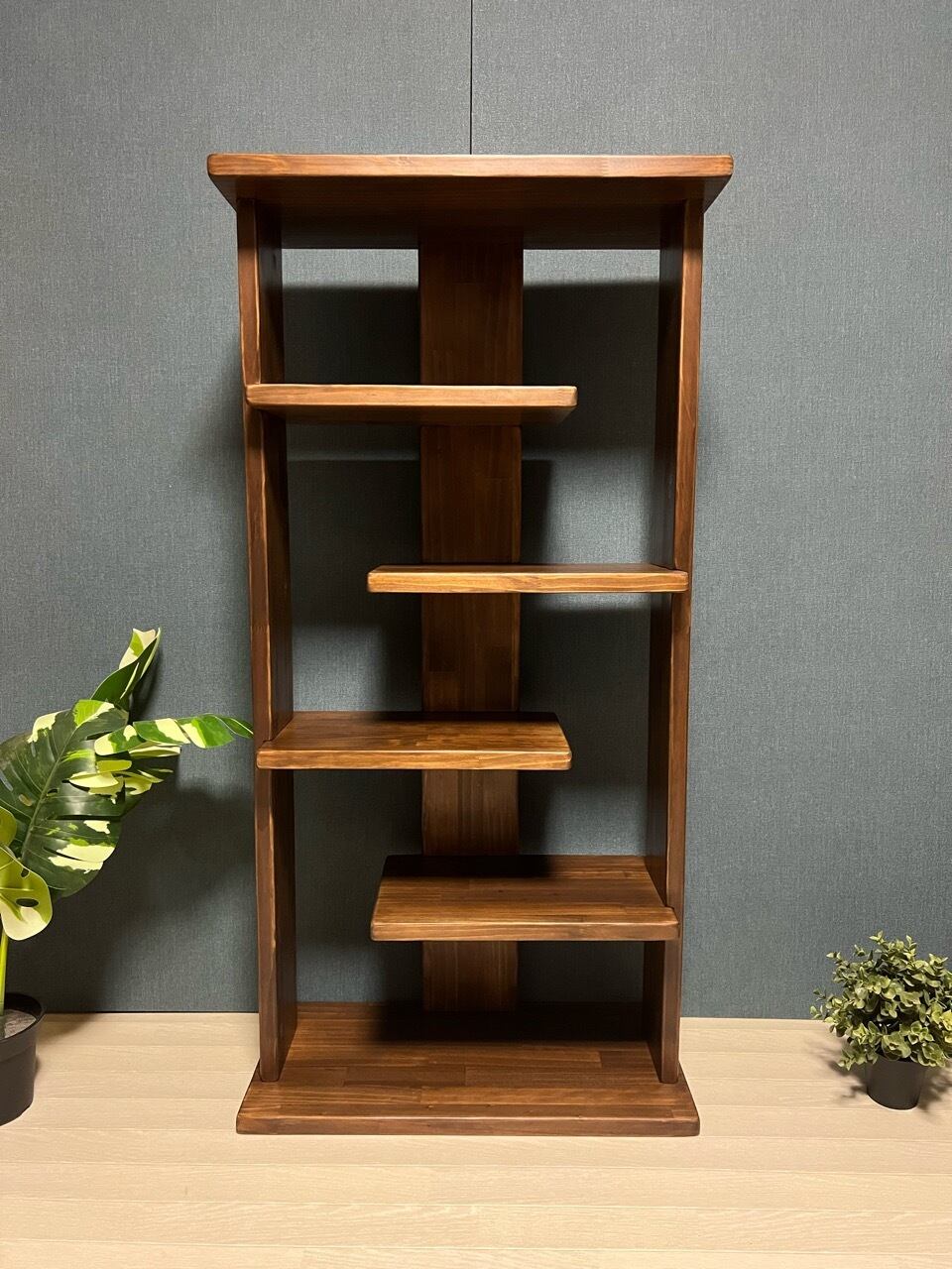 ◎棚板は互い違いに配置してあり、高さのある物品も陳列が可能です。