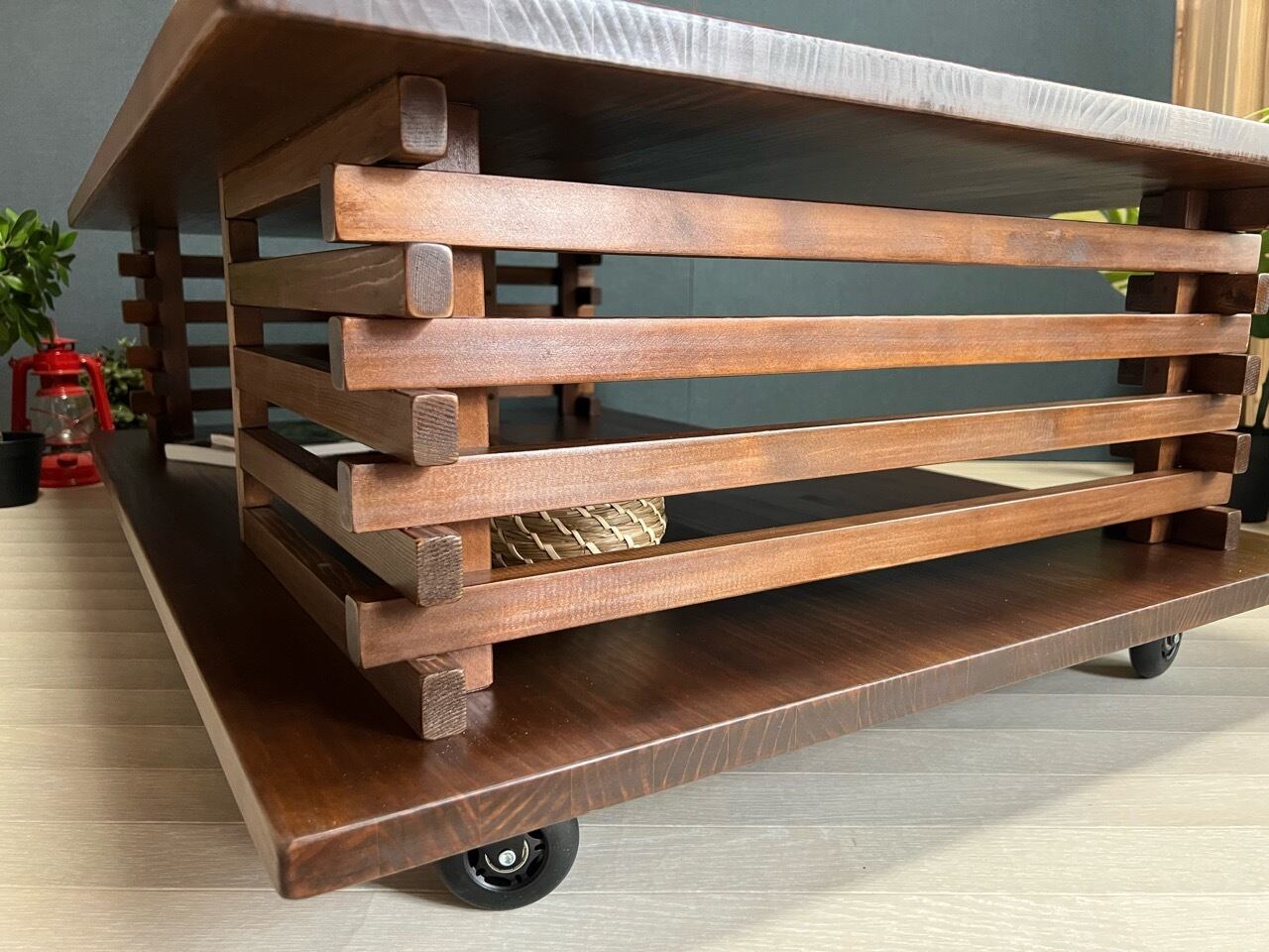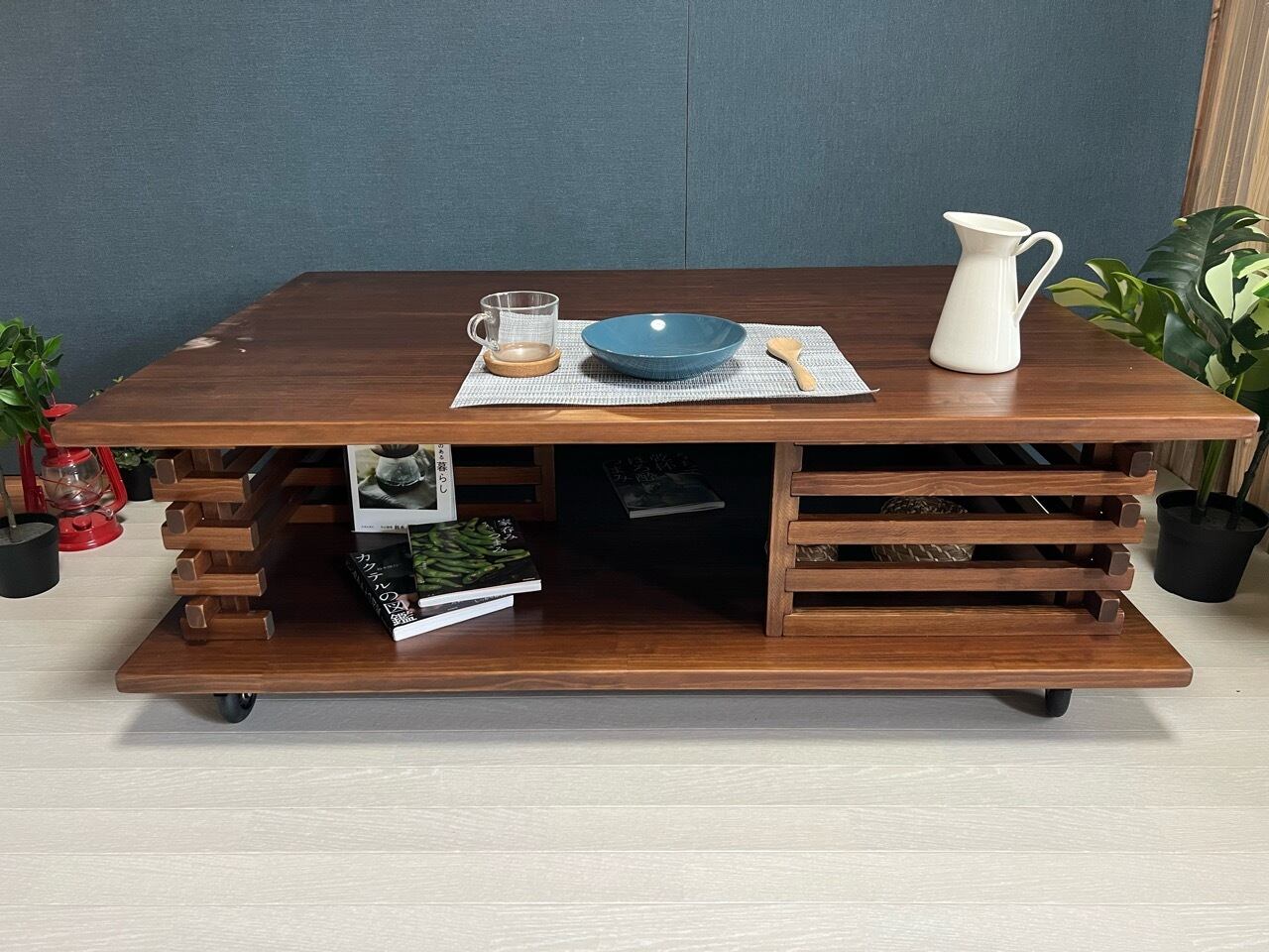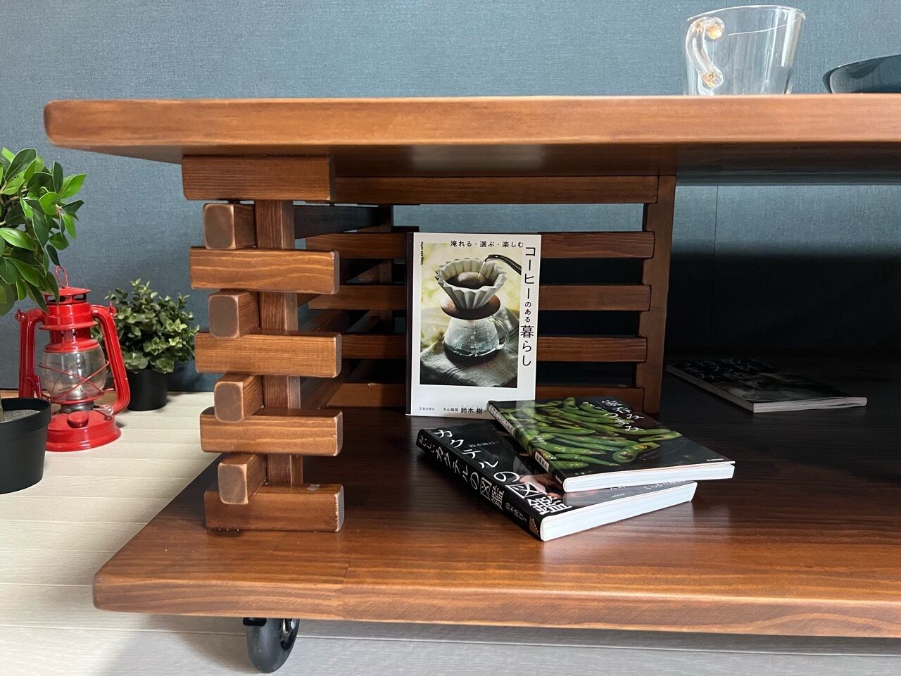 【送料無料】 ローテーブル 和風 木組格子形 車輪式120cm 70cm パイン ウォルナット