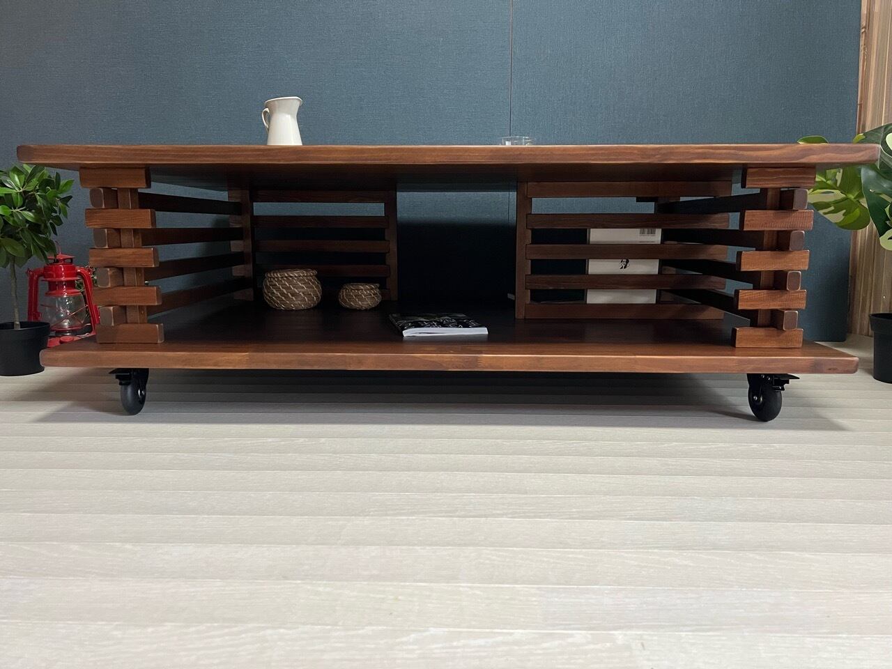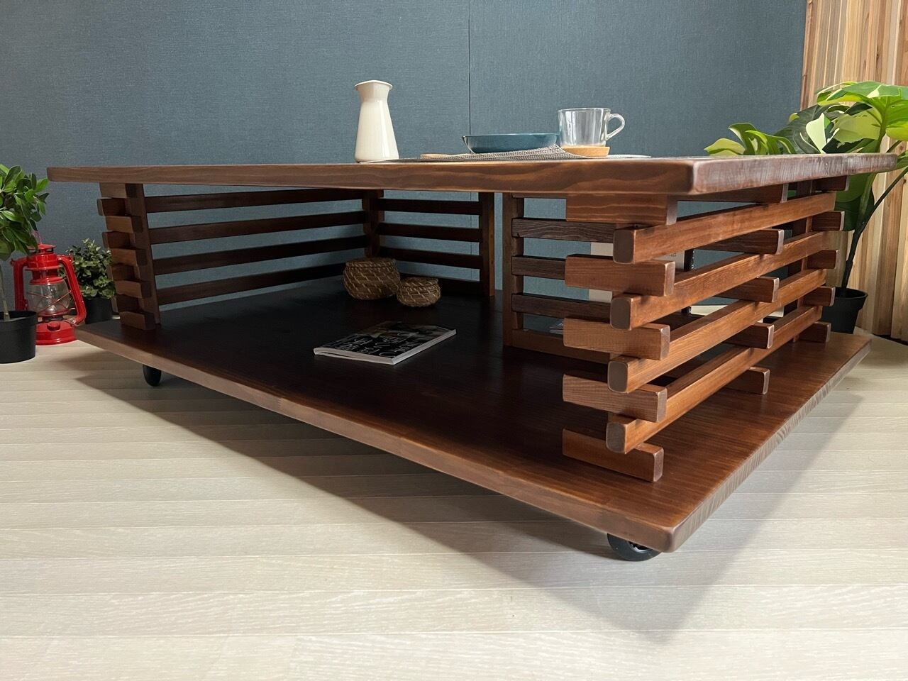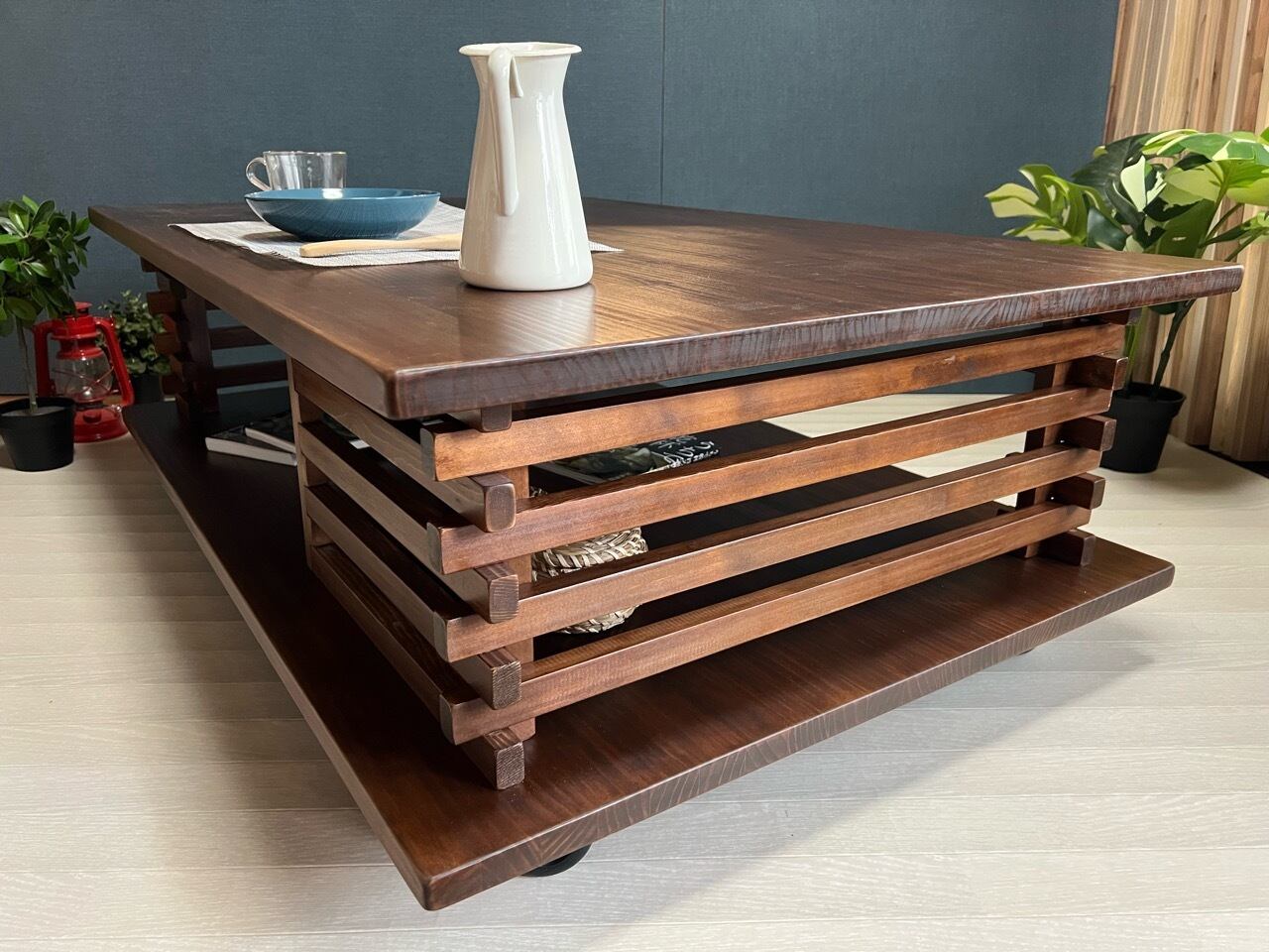 【送料無料】 ローテーブル 和風 木組格子形 車輪式120cm 70cm パイン ウォルナット