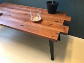 ◎5枚の板材を並べて天板とし、金属製折りたたみ脚を組合せました。