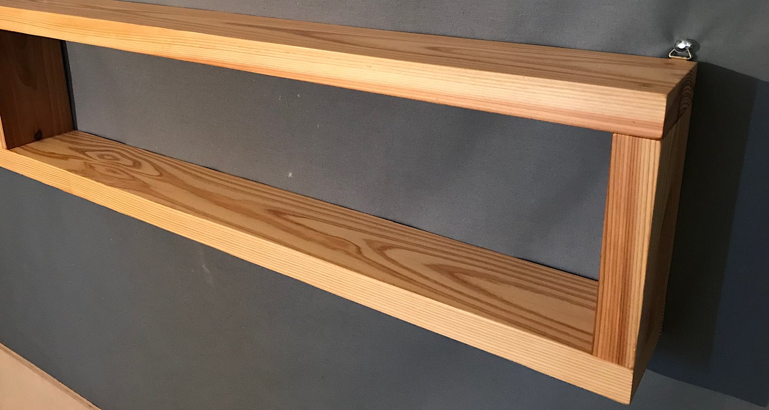 ◎木目が美しい杉材を使用した、ロ形のウォールシェルフです。
