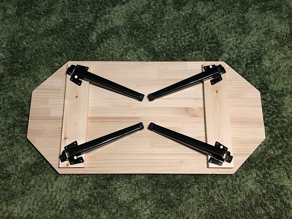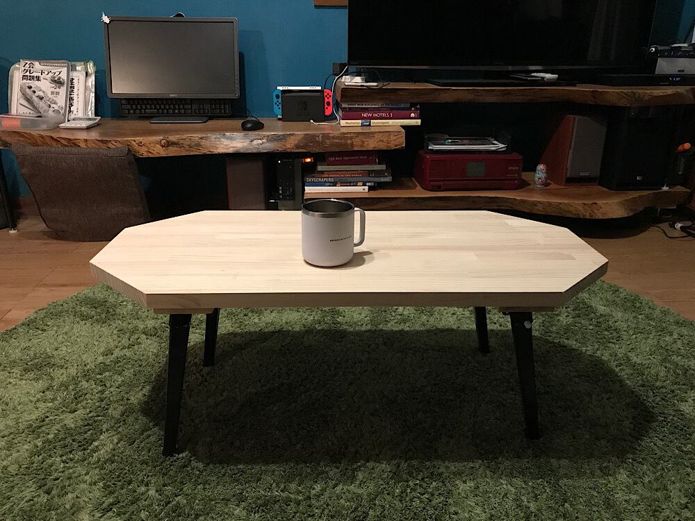 ◎一般的な90×45の天板の角を大きく無くして8角形にし、北欧風の仕上げとしました。