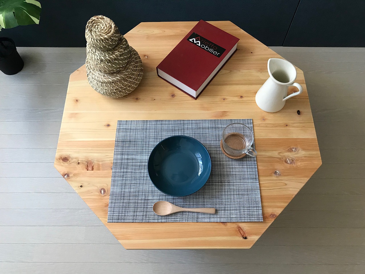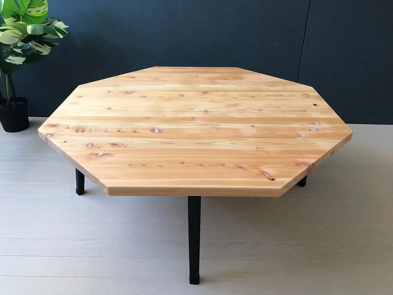 ◎上品な木目が特徴の、ヒノキ材を天板に使用した8角ローテーブルです。