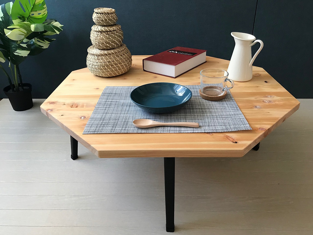 【送料無料】 ローテーブル 8角 90cm ヒノキ 折りたたみ脚