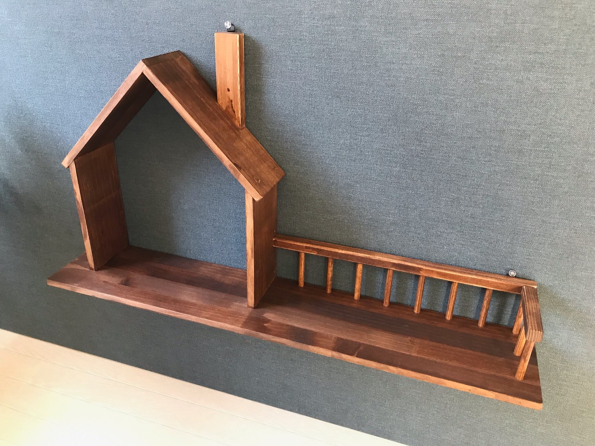 【送料無料】 ウォールシェルフ ハウス 柵付き 80cm ブラウン