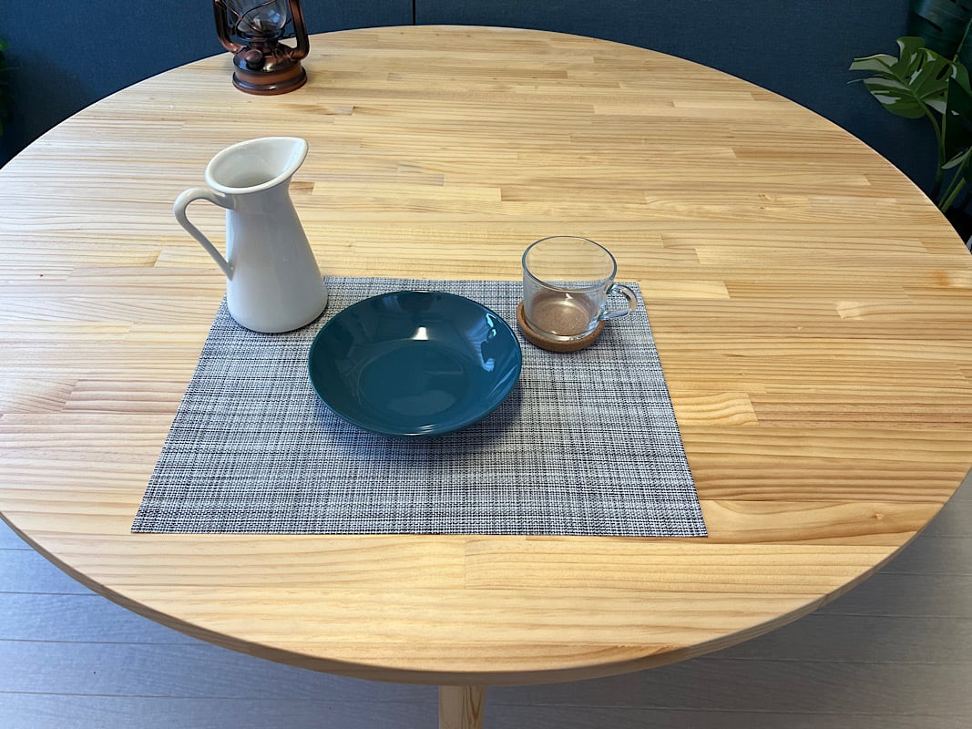 ◎上品な木目が特徴の、パイン材を天板に使用した丸型ローテーブルです。(真円では御座いません!)