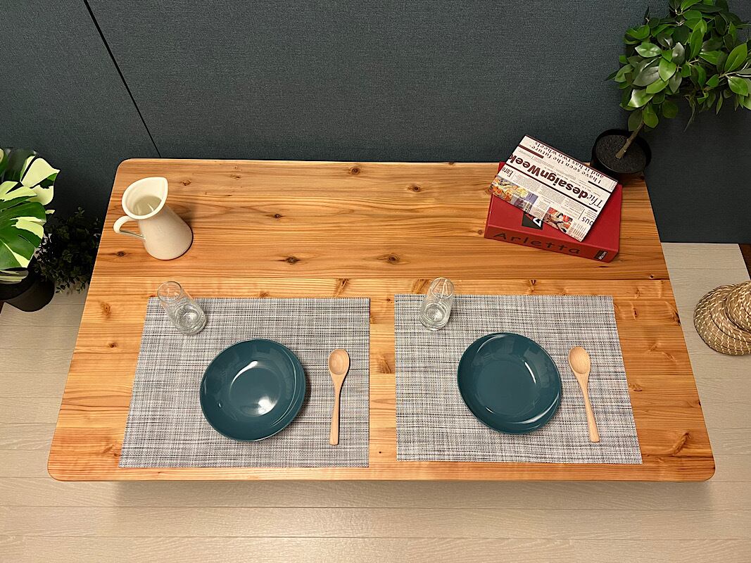 ◎上品な木目が特徴の、パイン材を天板に使用したローテーブルです。