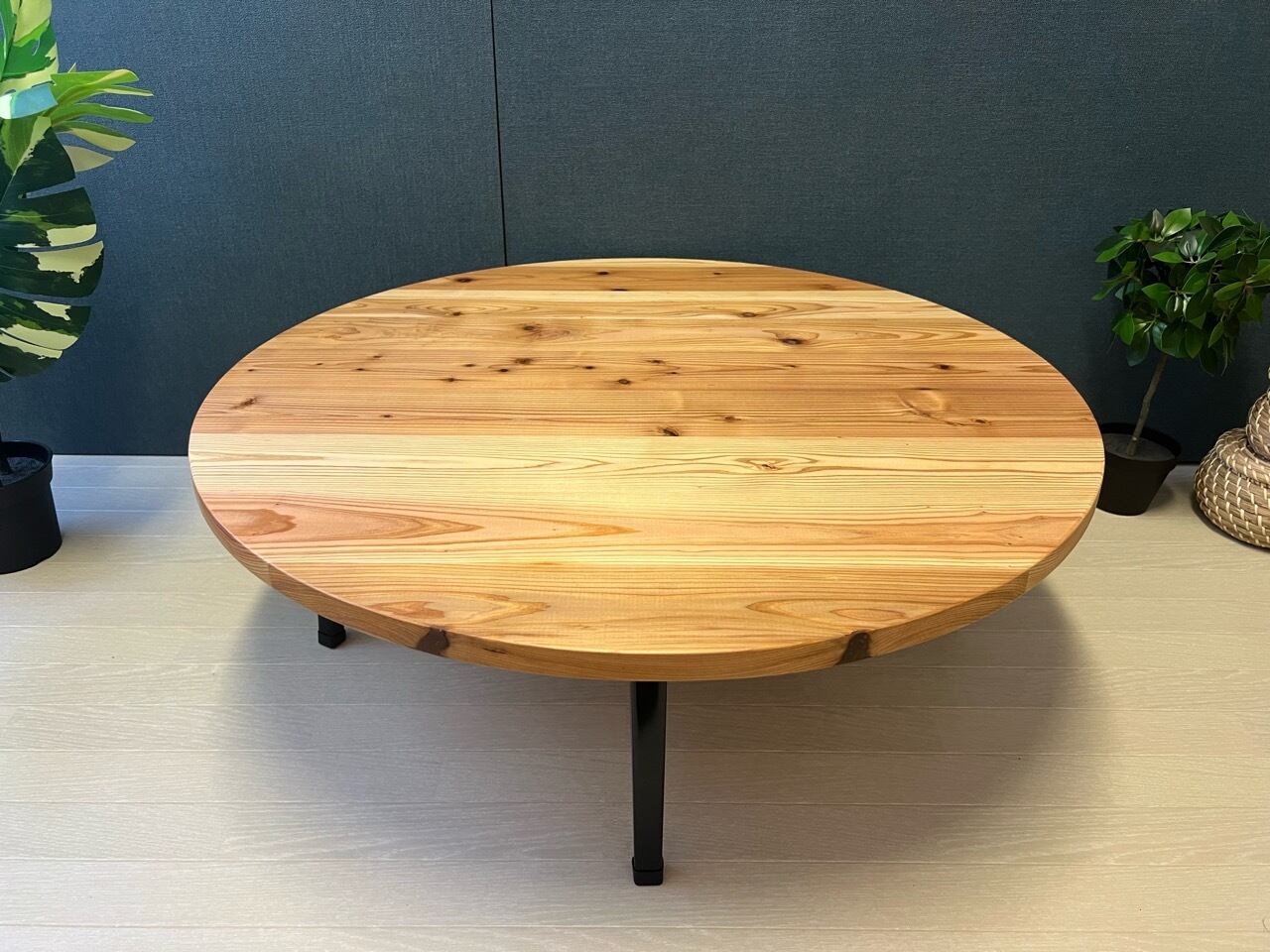 ◎荒々しい木目が綺麗な杉材を天板に使用した、丸型ローテーブルです。(真円では御座いません!)