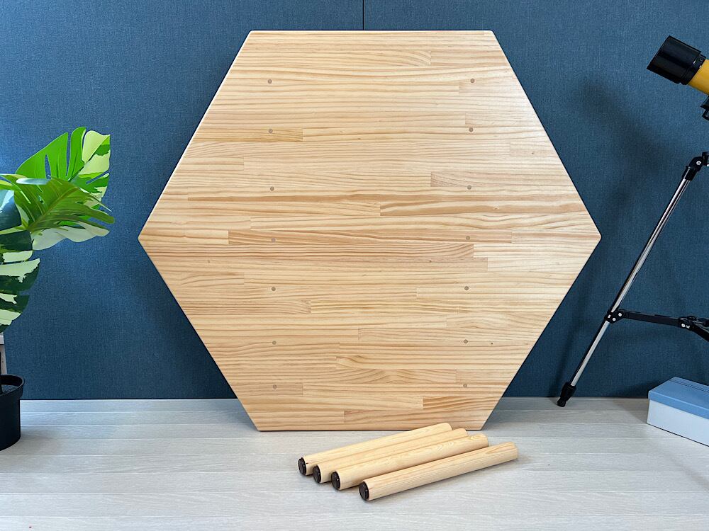 ◎上品な木目が特徴の、パイン材を天板に使用した6角ローテーブルです。