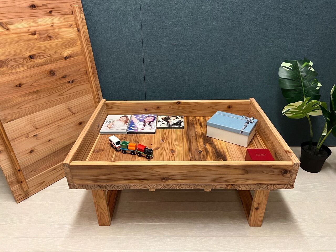 ◎荒々しい木目が特徴の、杉材を使用したローテーブルです。