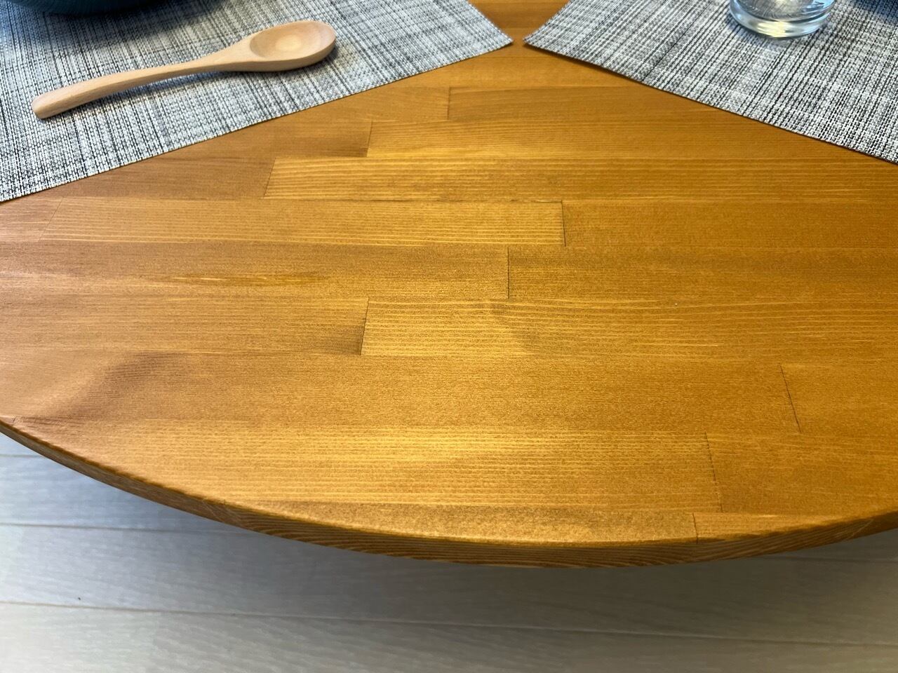 ◎上品な木目が特徴の、パイン材を天板に使用した丸型ローテーブルです。(真円では御座いません!)
