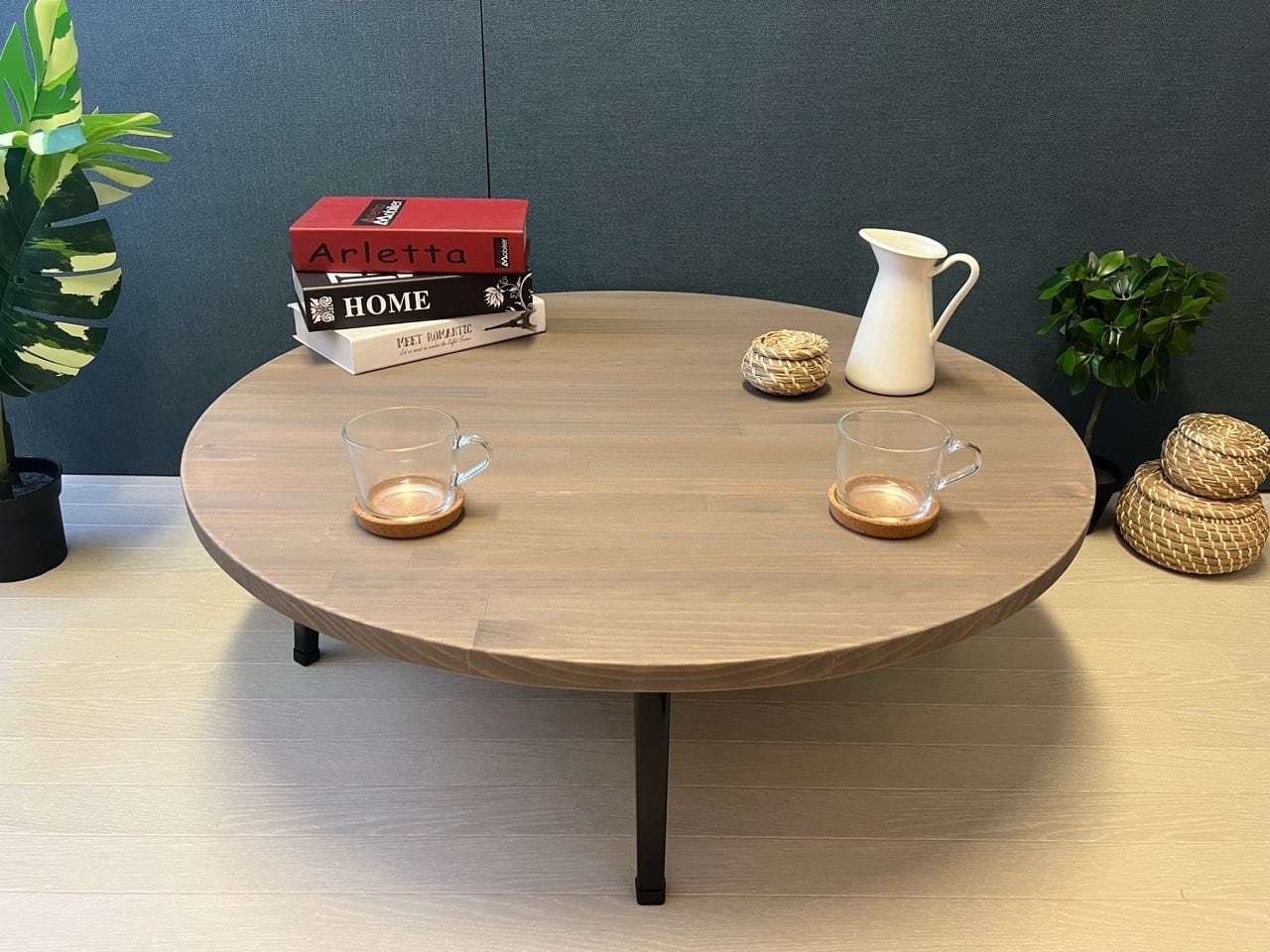 ◎上品な木目が特徴の、パイン材を天板に使用した丸型ローテーブルです。(真円では御座いません!)
