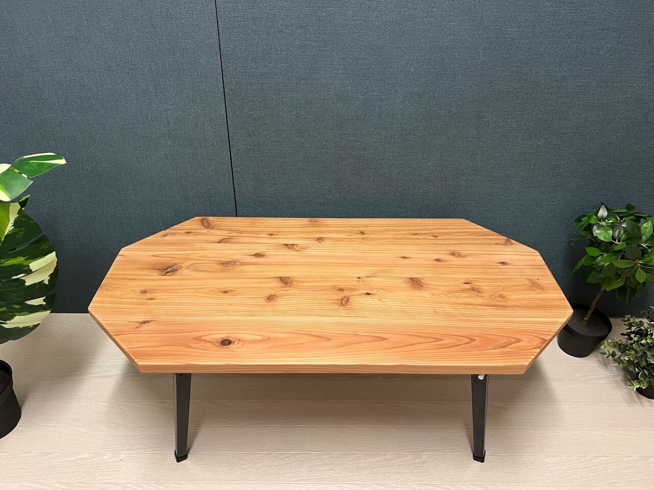 ◎一般的な90×45の天板の角を、大きくカットして8角形にし、北欧風の仕上げとしました。